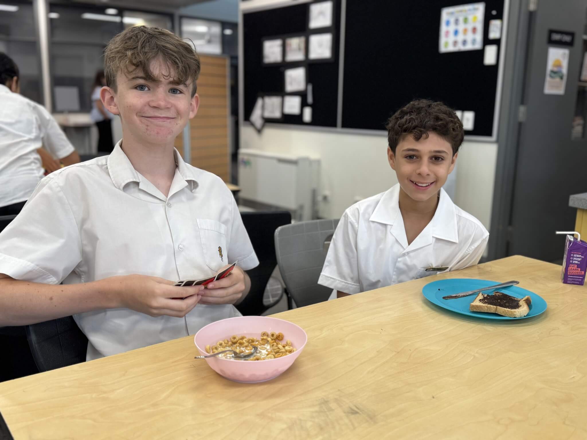 As Year 7 and 8 students wander into the breakfast room, they pour themselves bowls of Vita Brits and Cheerios, and spread Vegemite on fresh bread. They grab apples, oranges and fruit cups, and take a seat at one of the many tables. For Molly, it’s a great place to have fun with her friends over a game of Uno or Connect 4. “You can meet someone new and have a good bond with them over food,” she says. Every school does Breakfast Club their own way. But all make a huge difference to the 600,000 kids who can access the free program, run in partnership with the Victorian Government, and offered to all government schools.
