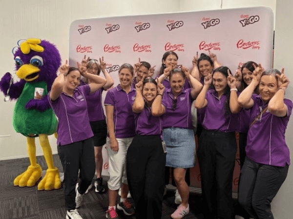 The team were warmly welcomed by farmer Damien, Jo and Curly Sue the farm dog. They introduced us to Brownes Dairy’s community program where thousands of students take part in free school tours each year. These tours help children learn where milk comes from, why it is good for us and how it forms part of a healthy diet.
