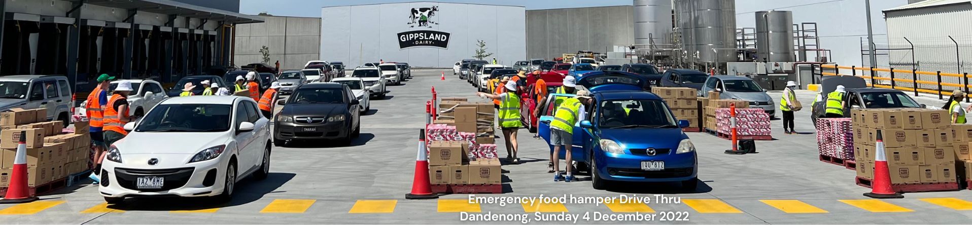 We had 1,600 cars come through the Drive Thru sites in at the in Epping and Dandenong to receive free hampers with fresh food and pantry staples. No questions asked.