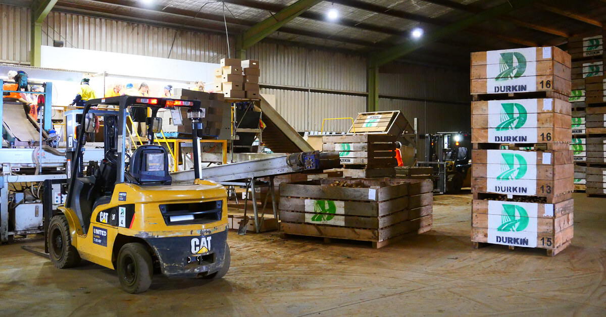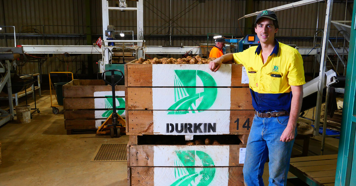 Father and son duo, Mike and Matt Durkin, oversee the harvest of 10,000 tonnes of potatoes a year for the Durkin Group. The farm supplies a large amount of potatoes to Woolworths and Aldi every year.