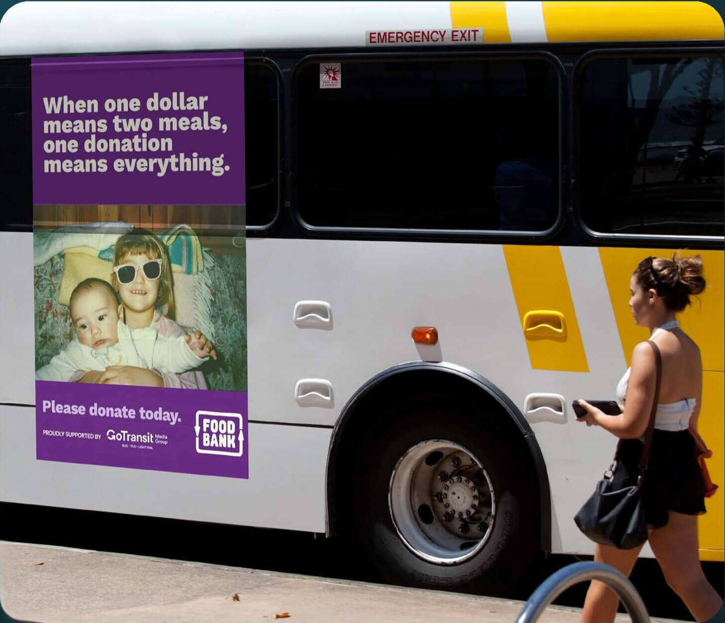 GoTransit Media Group has been working with Foodbank to support and help promote awareness with on road campaigns throughout the year. This Christmas GoTransit are donating 20 meals for every booking made from 17 Nov – 12 Dec, 2025.