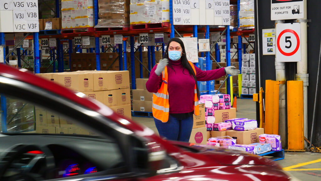 With an amazing effort from our staff and volunteers, as well as traffic controllers managing the flow of people, we were able to provide more than 1,200 hampers of food to Victorians doing it tough during the lockdown.