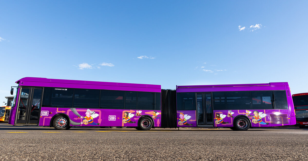 Keep an eye out and give us a wave if you see the big purple buses (sounds like a Wiggles reference. Funnily enough, the first bus is named Dorothy!) heading in your direction.