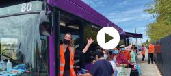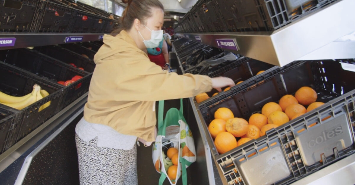 With entry at the back and exit at the front, the 18-metre bendy buses offer a miniature supermarket experience with shelving and refrigeration stocked with a range of fresh produce, pantry and staple items. Each bus will support approximately 100 families at every location with around 15 kilograms of food per family.