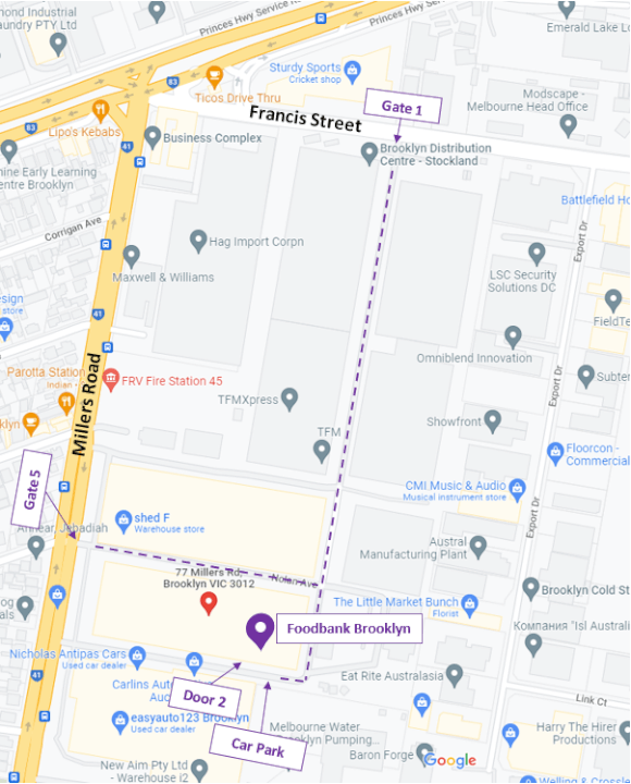 See the map here for directions on where to park and how to enter the warehouse safely. Please enter through the pedestrian door and not the roller doors as these are for the trucks.